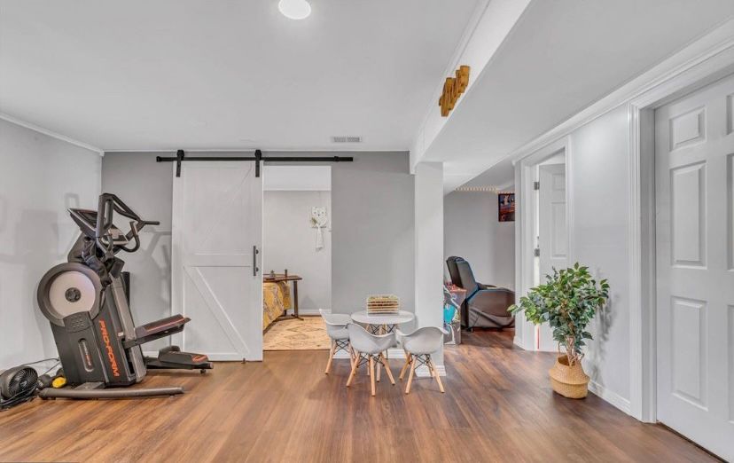 From concrete slab to fully functional basement (non furnished); gym, electrical, full bath, large kitchenette with 15 inch overhang quartz top
